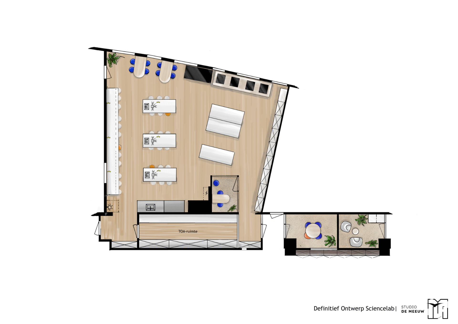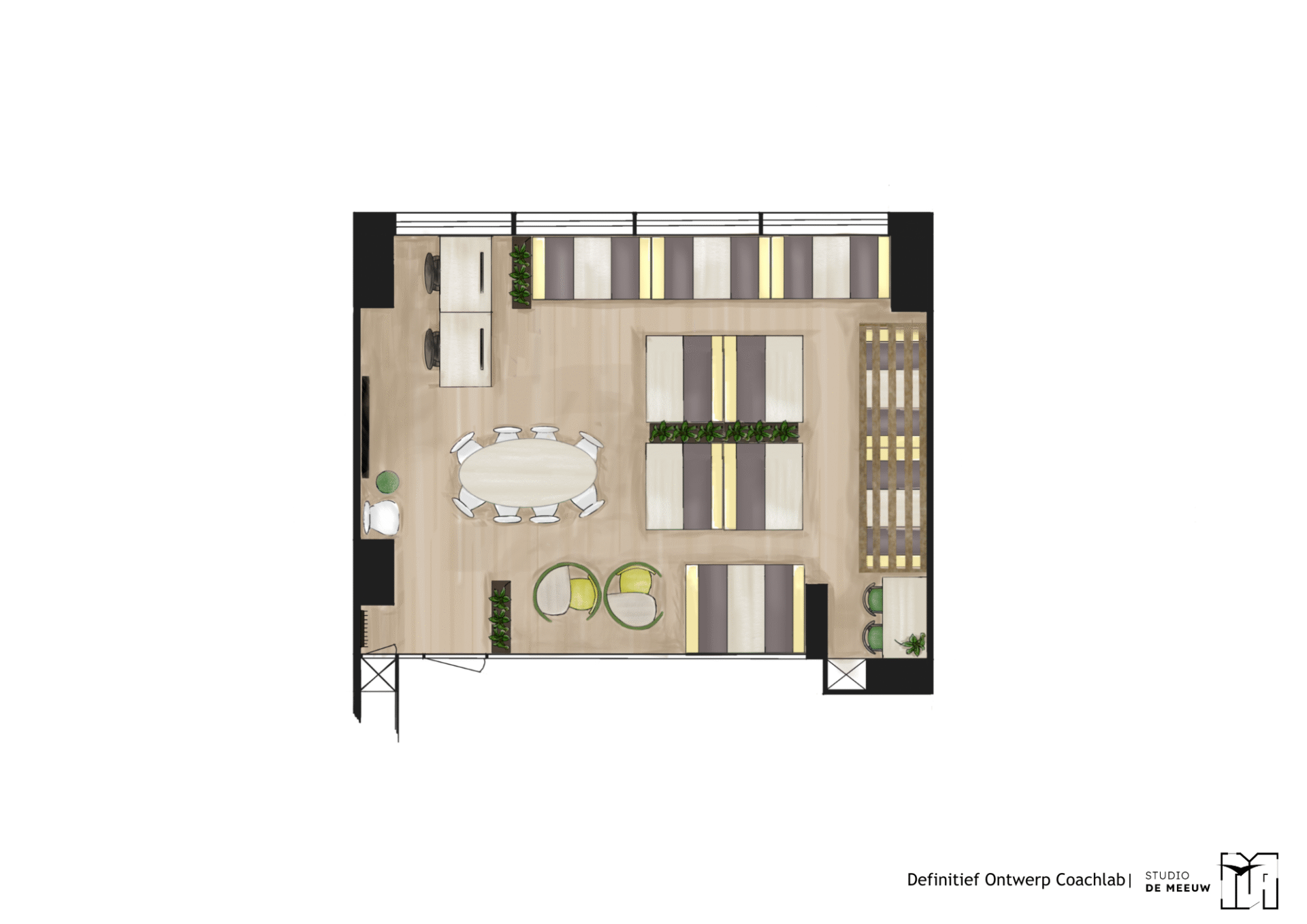 Belangrijke pijlers voor een productieve en aangename werkomgeving zijn akoestiek, klimaat en verlichting. In het ontwerpproces wordt hier veel aandacht aan besteed. De toevoeging van levend groen in de werkomgeving brengt rust en geeft sfeer. Het heeft een positieve invloed op de luchtkwaliteit en daarmee op de productiviteit en het welzijn van medewerkers. Een goed lichtplan draagt ook bij aan een efficiënte werkplek. De juiste verlichting versterkt het hele interieur. Studio De Meeuw helpt u graag bij het ontwerp en de realisatie van uw optimale werkomgeving.